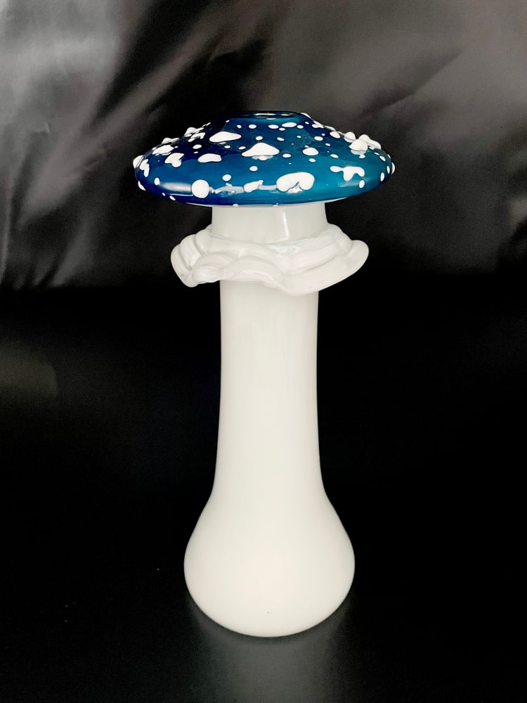 Charge the glow in this piece via sunlight/any bright LED light/UV light. The longer the piece is charged, the longer it will retain its glow. (This piece will glow a bright blue color in the dark)