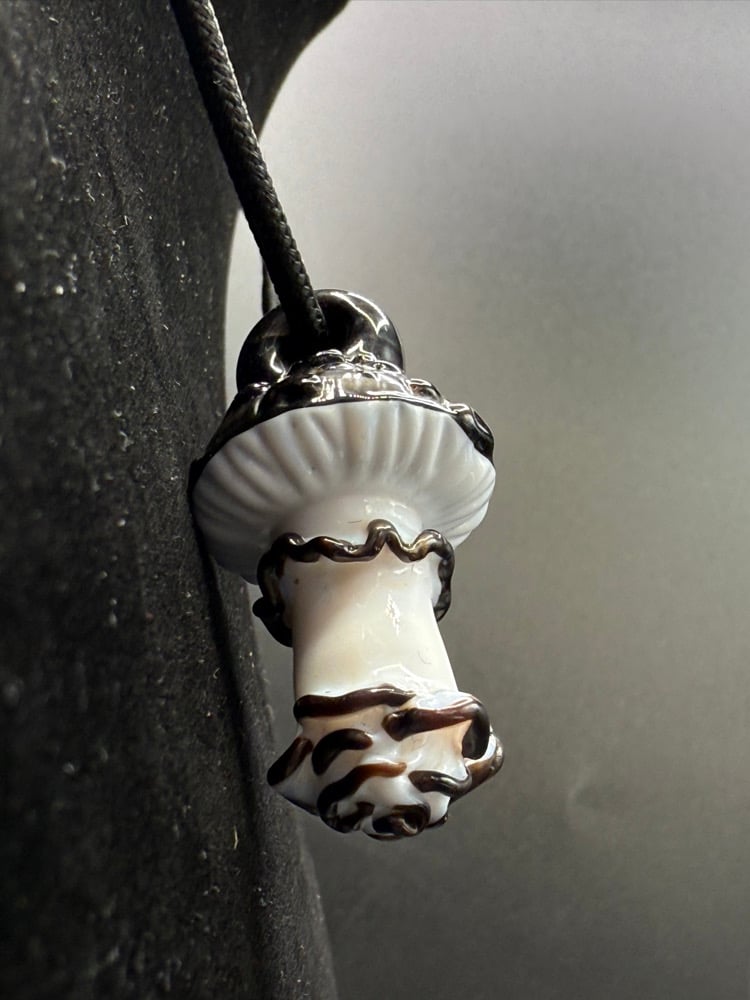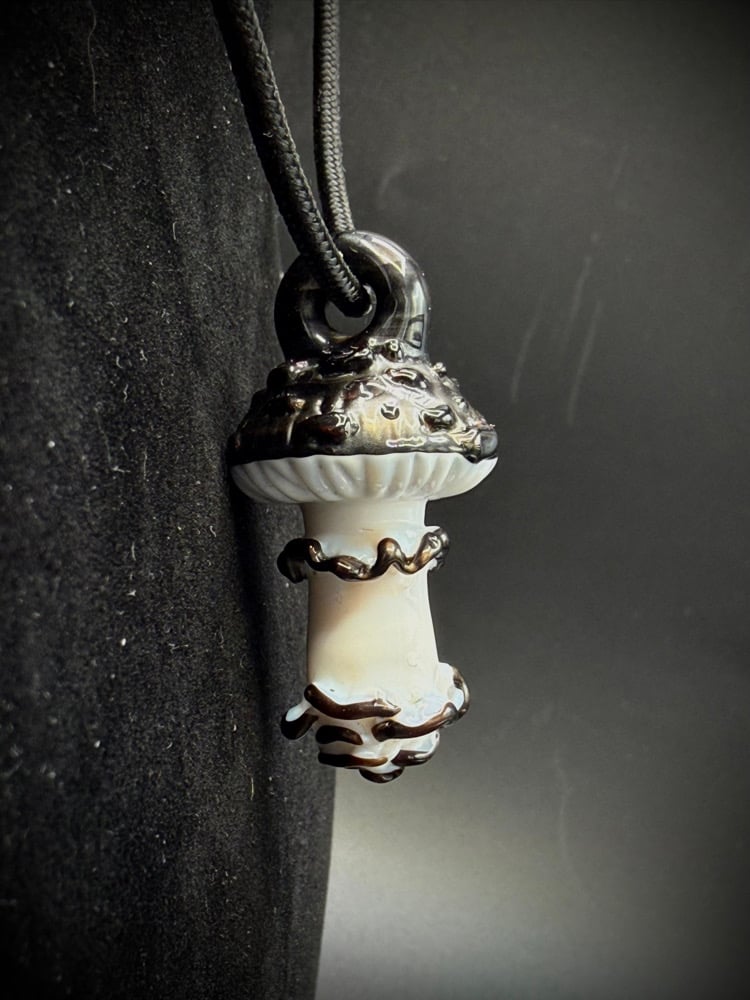 This one of a kind mushroom pendant is extremely eye catching with the metallic sheen the electrum produces, almost appearing to be metal.