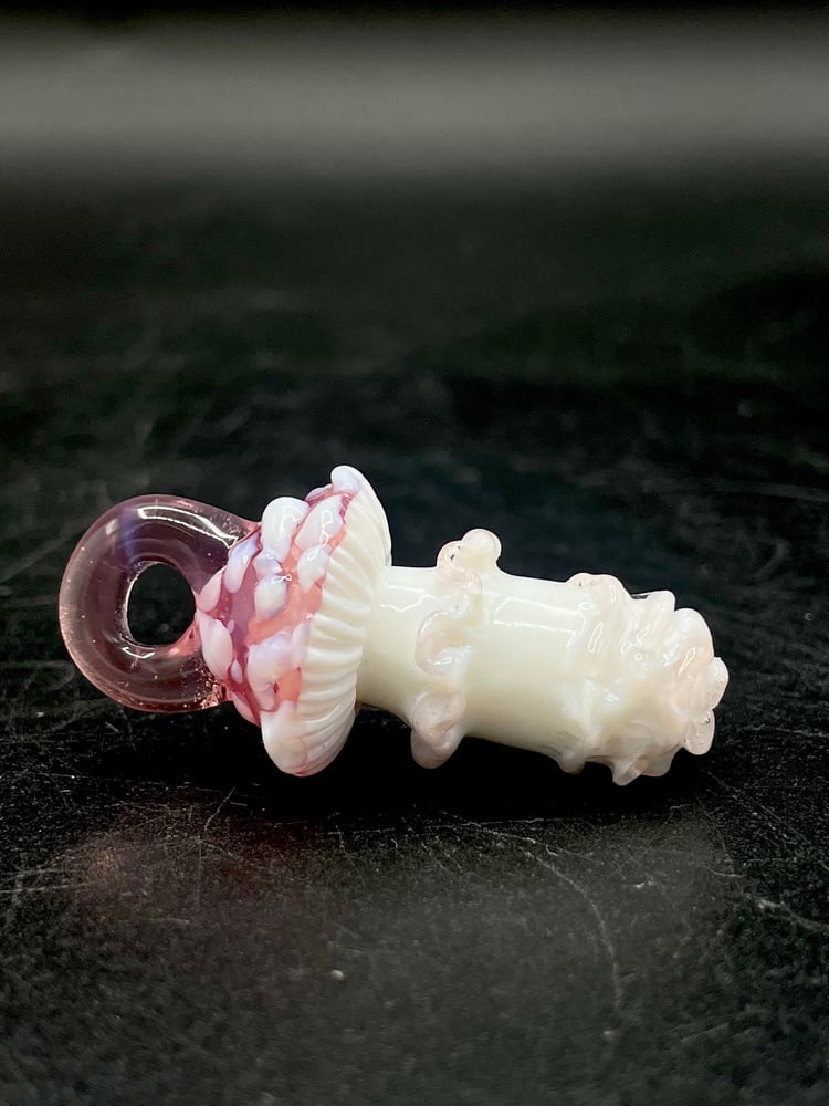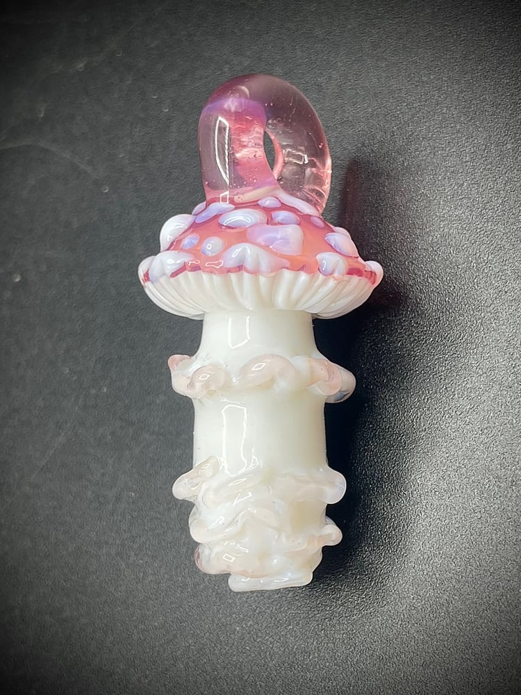 This mushroom was carefully sculpted on the torch by Angie Seraphinoff in 2024.